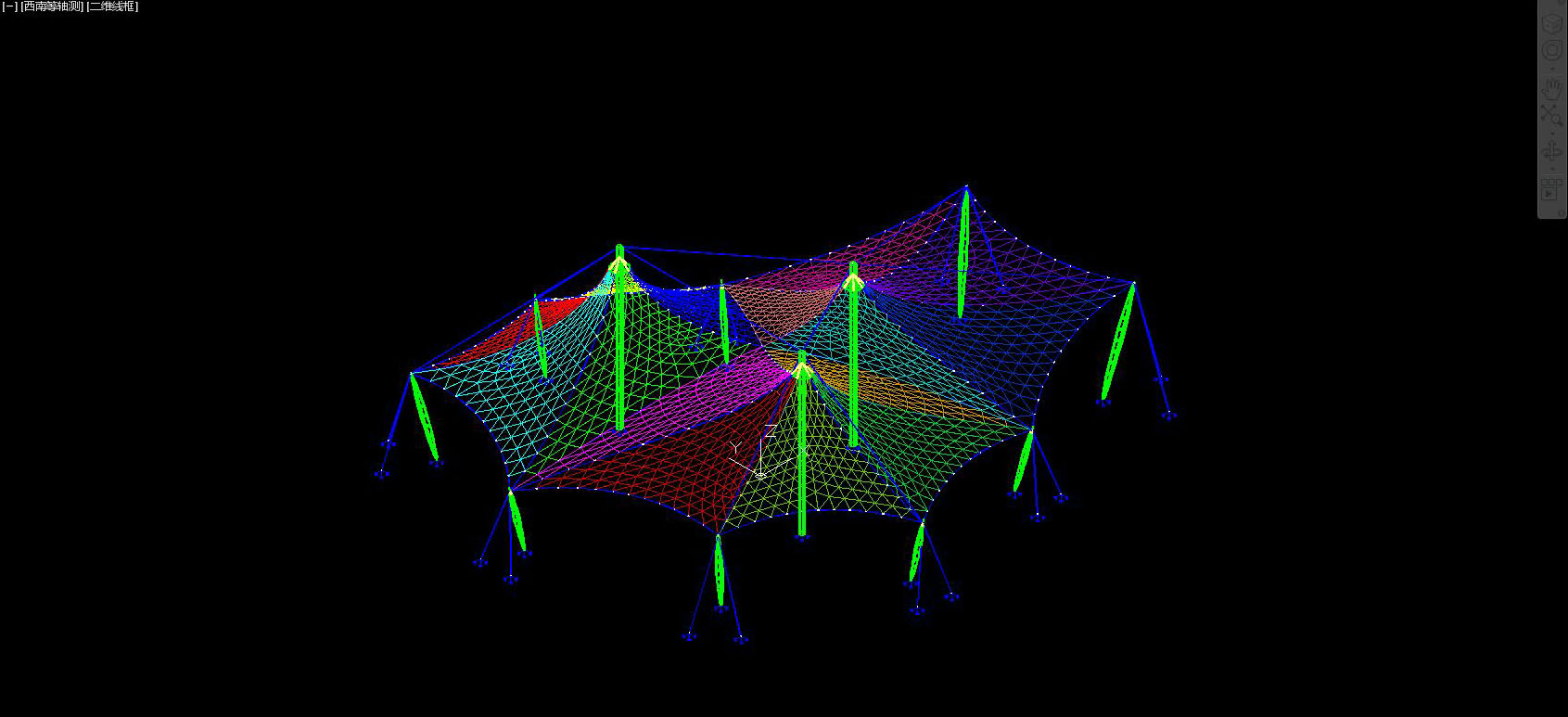 合理的裁剪设计,不但影响膜面的美观同时还决定了膜材的用量;根据所选膜材的幅宽将不可展开的曲面分割成小块,来满足设计的需求!